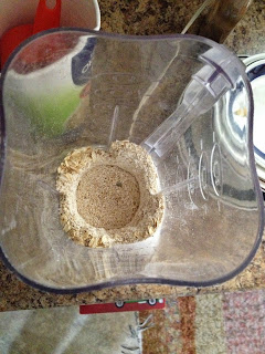 First, make your oat flour. You need 3 cups of this (measured before grinding). I’ve found it easiest to do this 1 cup at a time in my blender, but if you have a fancier blender or use a food processor, you could probably do more at a time.