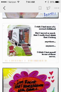 I saw this picture while scrolling through the latest Postsecret post yesterday. And it really hit home for me, because a few years ago, I could have written it. It says: “I wish I had more of a normal childhood. But I moved so much that I really don’t think that I belong…anywhere…anymore…I think I lost myself in one of those moves.”